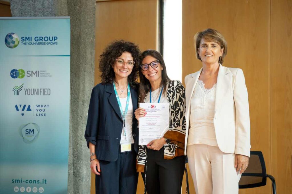 Durante l’evento, Anna Conte, Responsabile dello Sviluppo Servizi Digitali e Cybersecurity di CSQA, ha consegnato a SMI Group la certificazione IISO/IEC 42001 n° 86808 – Accredia. SMI Group è la prima realtà italiana a ottenere la certificazione, con la quale è ora in grado di sviluppare tecnologie IA fidate e trasparenti e può affiancare i propri clienti e partner nello sviluppo e nell’adozione di sistemi di IA affidabili, etici e sostenibili.